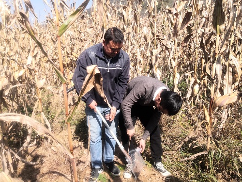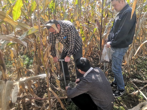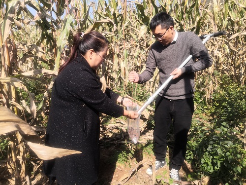 调研组选择具有代表性的土壤依次进行取样,检测土壤中氮、磷、钾主要元素的含量,根据测试结果和参数制定科学的配方,生产配方专用肥,为来年庄稼丰收做充足的保障。